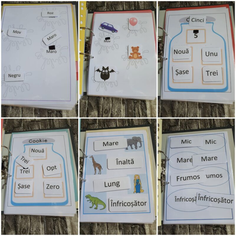 Acest set este ideal pentru copiii care încep să exploreze cititul și scrisul, dar și pentru cei care au nevoie de consolidarea limbajului și a comunicării. Prin activități simple și repetitive, copilul învață să recunoască, să asocieze și să identifice termeni din viața de zi cu zi, facilitând progresul într-un mod plăcut și eficient.